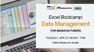The WT Enterprise Center is partnering with the Texas Manufacturing Assistance Center to provide a series of workshops to help local manufacturers streamline production within their business.